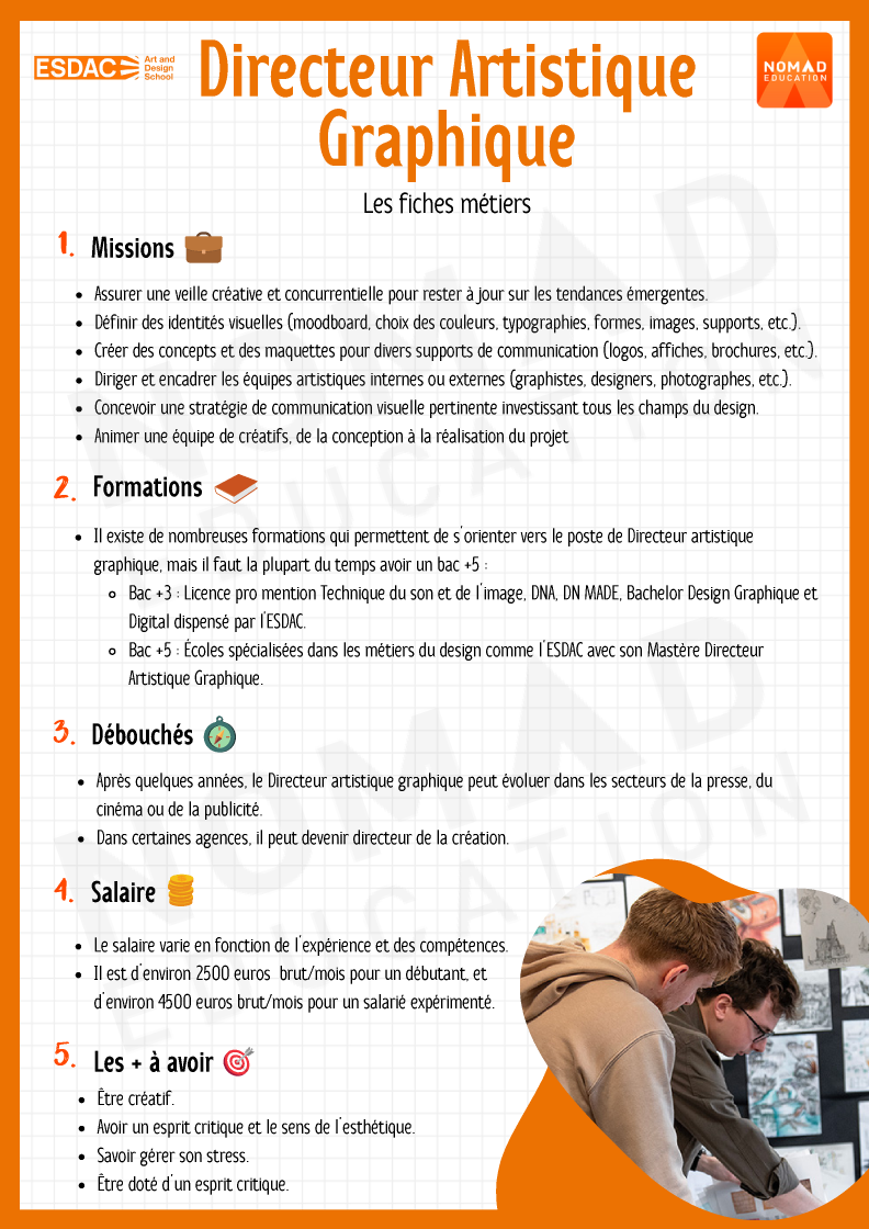 L’ESDAC est une école supérieure de design qui forme les créatifs de demain 🎓✨. Elle propose des formations dès le niveau bac dans des domaines variés comme le Design Graphique, le Design d’Espace et architecture d’intérieur, le Design de Mode et le Design Produit.
