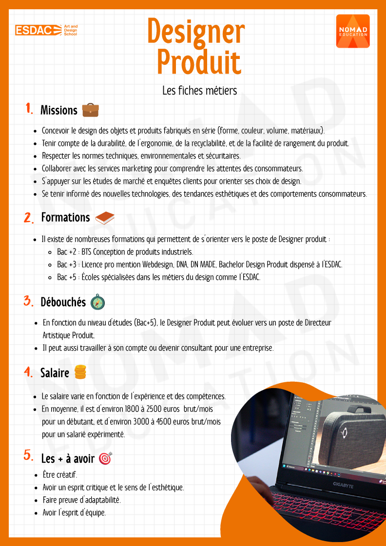 De la conception de produit à la mode, en passant par le graphisme ou l’architecture d’intérieur : tu choisis ta voie. - Un tremplin vers le monde pro 💼