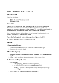 Annales corrigées du BEPC 2024 Zone 3 – Orthographe