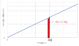 $\bf C = Q / V$ The unit of capacitance is the farad $\rm (1~F=1=CV^{-1})$ - For a body of capacitance C and voltage V the charge that can be stored is $\rm Q = CV$.