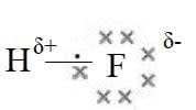- Hydrogen fluoride is a polar molecule as $\rm F$ is more electronegative than $\rm H$. polar covalent molecules have partial charges $\rm X^{\delta +}Y^{\delta -}$.