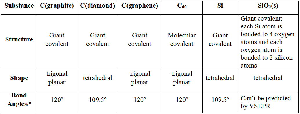 - Carbon, silicon, and silicon dioxide form giant covalent molecules.