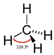 Methane, ammonia and water have four electron domains in a tetrahedral arrangement around the central atom.