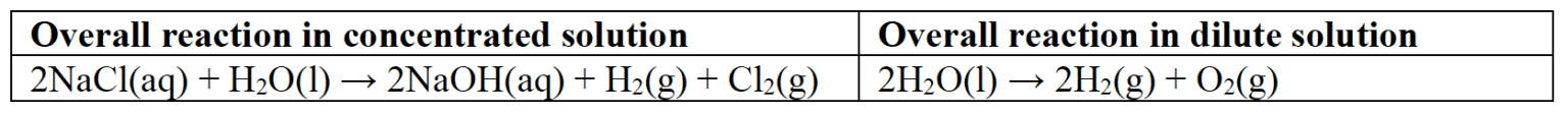 Electrolysis of Sodium Chloride with inert electrodes at different concentrations
