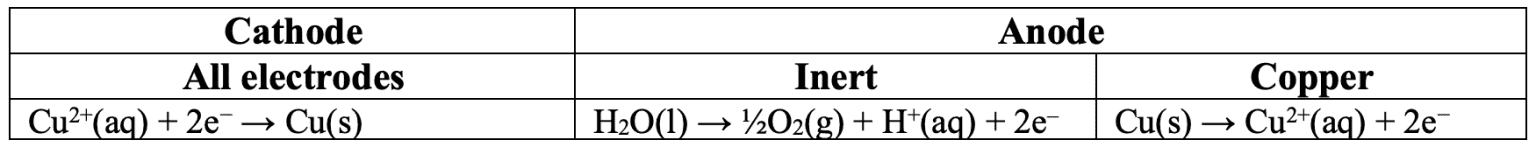 - for $\rm 1~mol$ $\rm Cu(s)$ to be produced $\rm 2~mol$ of electrons are needed.