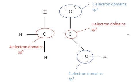 Deduce the type of hybridization shown by the carbon and oxygen atoms in ethanoic acid.