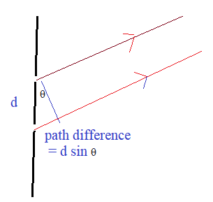 - Bright fringes occur at angles $\theta$ where the path difference corresponds to a whole number of wavelengths. The waves interfere constructively.