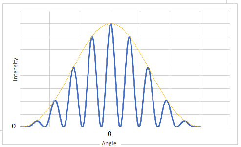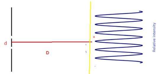 - The diagrams show the intensity observed far from the two slits The pattern shows equally spaced maxima whose intensity is the same.