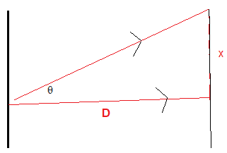 - The distance between the fringes $x$ increases when the distance $d$ between the slits decreases or when the wavelength increases.