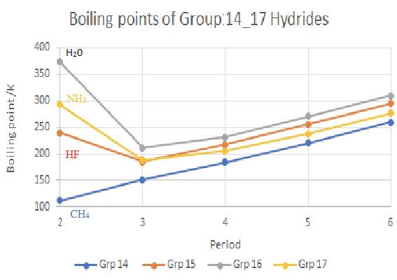 Evidence for the relative strength of hydrogen bonding comes from the relative boiling points of the group $\rm 14-$ group $17$ hydrides which highlight the relative high boiling points of $\rm H_2O$, $\rm NH_3$ and $\rm HF$.