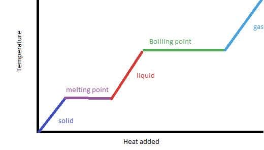 • Every substance changes state by melting/freezing and boiling/condensing at a defined temperature at constant pressure. During a phase change the temperature change does not change although the substance may continue to be heated. The heat is used to change the separation between the particles rather than their kinetic energy.