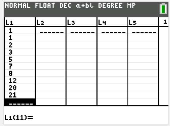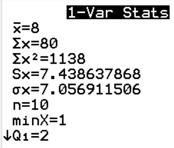 Listing these values in the STAT-EDIT option and STAT-CALC 1-Var Stats on the TI-84 graphing calculator gives: