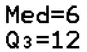 Thus the mean is $\bar x=8$, $Q_1=2$, $Q_2=6$, and $Q_3=12$. Therefore, the mean is $8$, $75\%$ of the data is above $2$, $50\%$ of the data (or median) is above $6$, and $25\%$ of the data is above $12$.