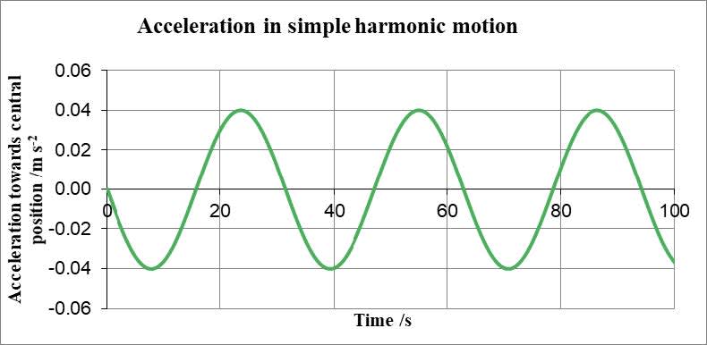 - In Simple harmonic motion (SHM) the acceleration is proportional to the displacement from equilibrium but in the opposite direction: