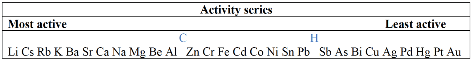- Metals less reactive than carbon can be extracted by reducing the metal oxide by the carbon.