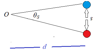 - The two objects in the diagram are at a distance $d$ from the observer $\rm (O)$ and separated by a distance $\rm s$. The angular separation is $\rm \theta_S \approx s / d$
