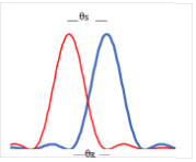 - To examine whether two sources are resolved the angular separation $\theta_{\mathrm{S}}$ must be compared with the resolution angle, $\rm \theta_{R}$, between the central maximum and the first minimum in a diffraction pattern.