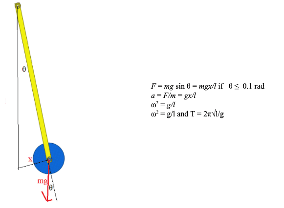 $a=-\omega^{2} x$ where $\omega$ is a constant called the angular frequency. - This can be expressed as $\mathrm{d}^{2} x / \mathrm{d} t^{2}=-\omega^{2} x$
