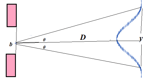 $b~\theta=\lambda$ - Considering other waves below the top and just below the middle of the slit can apply the same conditions to deduce the same general result: $\theta=\lambda / b$