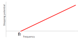 - There is a threshold frequency $\bf (\boldsymbol{f}_0)$ below which no electrons are emitted. In classical theory electrons would be emitted at all frequencies if the intensity was sufficiently high.