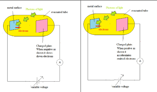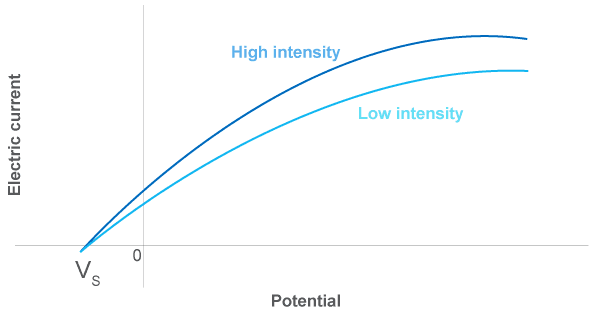 - The light intensity only affects the number of electrons emitted (i.e. the photocurrent).