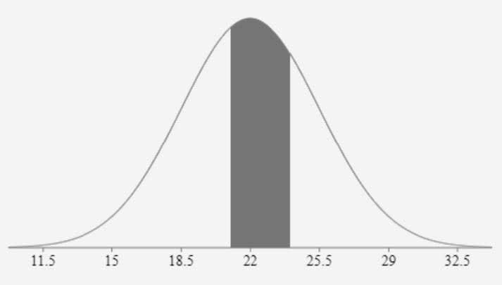 Example: A large group of students took an exam. It was determined that the mean was $22$ points and the standard deviation was $3.5$ points. Determine the probability that a randomly selected student scored between $21$ and $24$ points inclusively.
