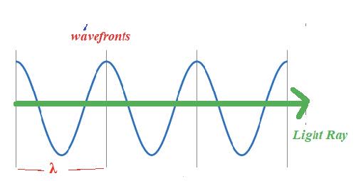 - The wavefronts are at right angles to the rays. All points on a wavefront have the same phase: they are generally shown at the crests and neighbouring wavefronts and are separated by a wavelength.