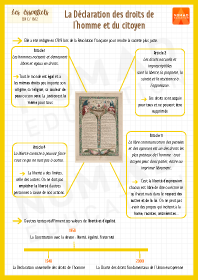 Lors de la Révolution française en 1789, un texte est écrit pour créer une société plus juste. Ce texte est la Déclaration des droits de l'homme et du citoyen (DDHC). Il se compose de 17 articles. Voici les plus importants :