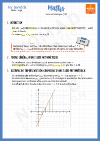 Une suite arithmétique $(u_n)$ est une suite où l'on passe d'un terme au suivant en ajoutant (ou en retranchant) le même réel $r$. On a alors $u_{n + 1} = u_n + r$ pour tout $n \in \mathbb{N}$.